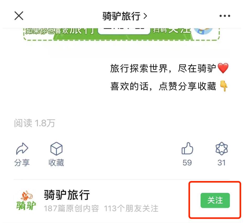 当然,公众号也不是没有设计关注按钮,只不过微信团队把它放在了文章最底部。如果你阅读完一篇文章且没有关注这个号的话,留言区上方会出现一个绿色的关注按钮。