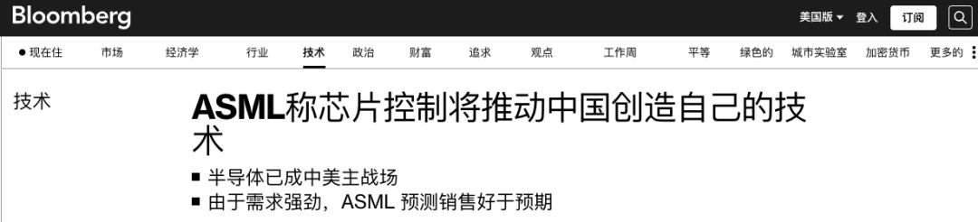 Bloomberg:ASML Says Chip Controls Will Push China to Create Own Technology