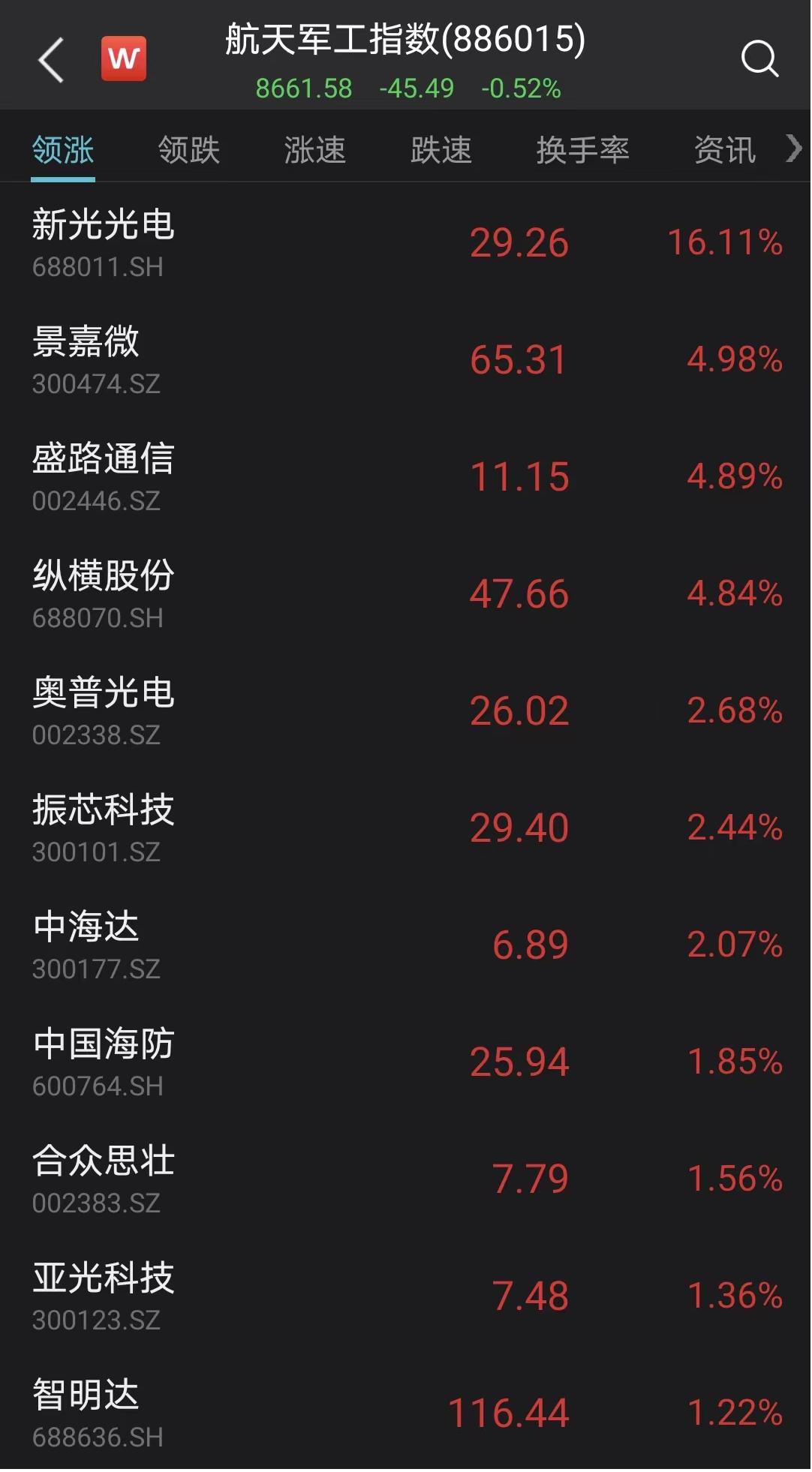 军工板块反复活跃,中航电测复牌一字涨停,公司拟通过发行股份方式购买航空工业集团持有的航空工业成飞100%股权;中光防雷、华力创通20CM涨停,新光光电涨超15%,国盾量子、航天宏图等涨幅居前。