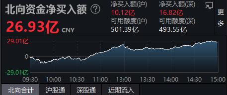 今日收盘,A股三大指数涨跌不一,沪指涨0.02%,深成指跌0.22%,创业板指跌0.44%;北向资金净买入26.93亿元。