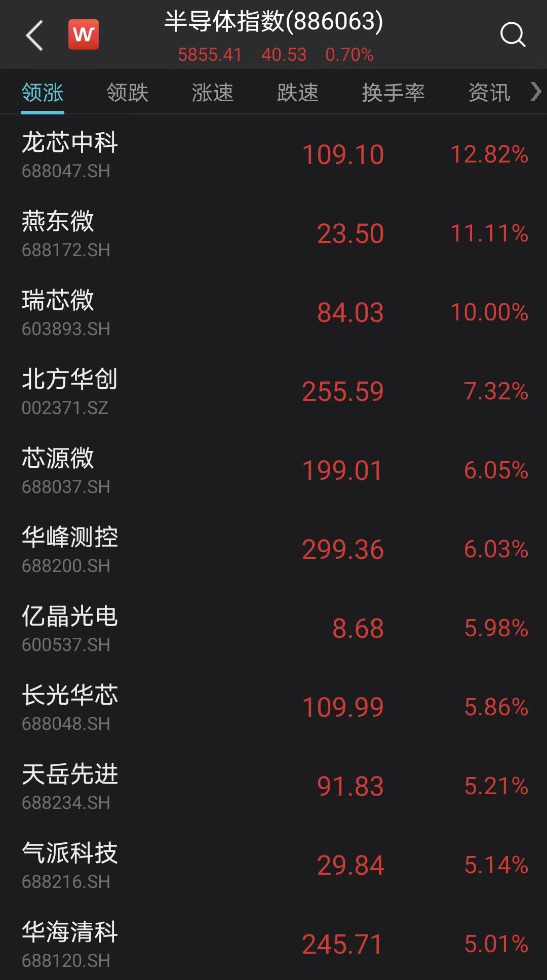 半导体芯片股开盘领涨,盘中持续走强,创业板亿通科技拉升封板,龙芯中科、国盾量子、寒武纪、北方华创、国民技术等涨超8%。