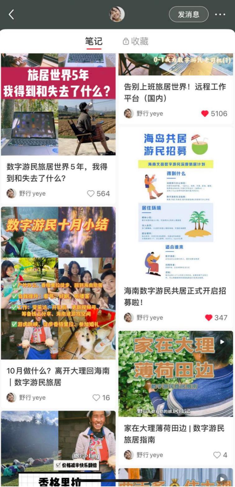 图 / Yeye在小红书账号“野行yeye”上的旅居经历分享