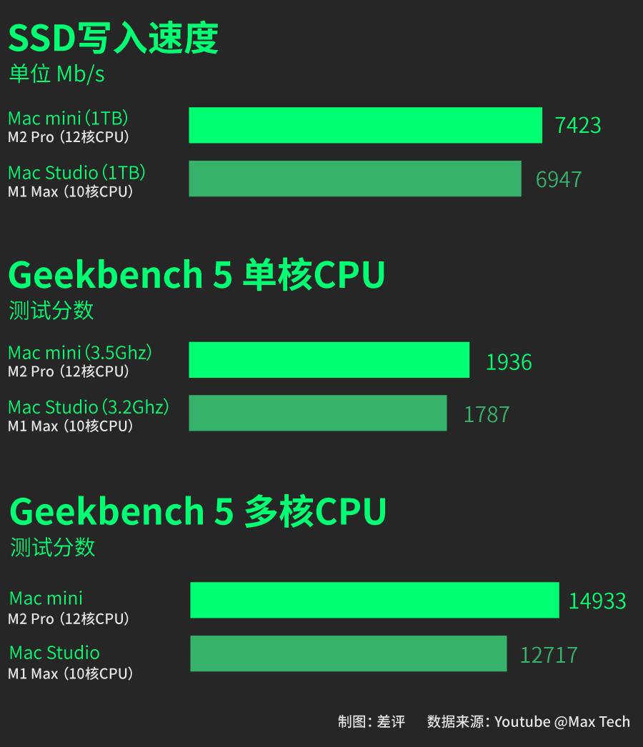 比如:硬盘写入速度、单核和多核性能均有小幅领先优势。
