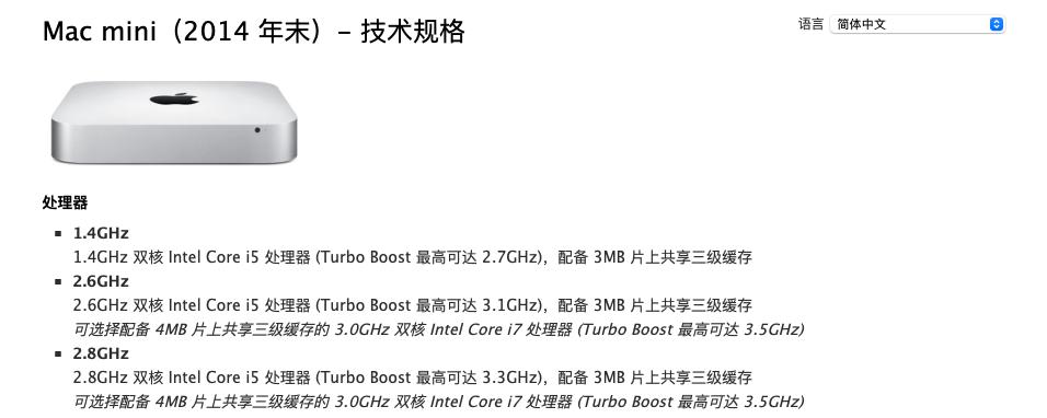 2012 款的 Mac mini 双核 i5 起步,还有高配四核 i7 可选;结果 2014 款只剩下了全系双核 i5 处理器可选。。。