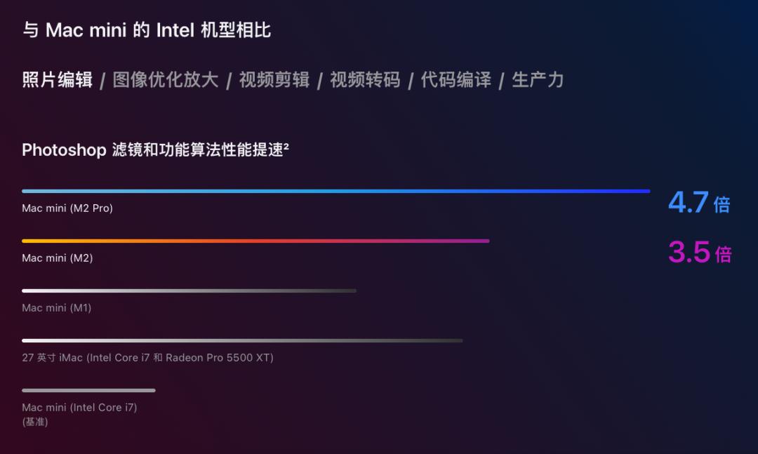 生产力呢……苹果官网的介绍当中已经把 Mac mini 在各种生产力环境中的升级数据都列好了。