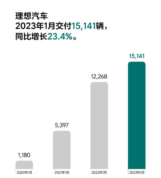 相比而言,理想可谓是2023开年第一个月的最大赢家。有L9/L8两款爆品新车的加持,其1月销量超越埃安,排到了第二位。数据显示,理想汽车1月份交付量达到15141辆,较去年同期增长23%,环比上个月减少29%。