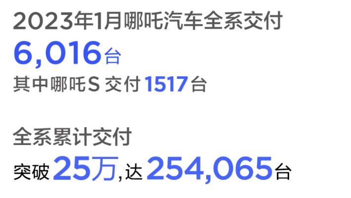 哪吒汽车在经历一段长时间的强势增长后,去年12月销量突然折戟。今年1月,其依然保持低位运行。数据显示,哪吒汽车1月份交付量为6016辆,较去年同期减少45%,较去年12月减少23%。