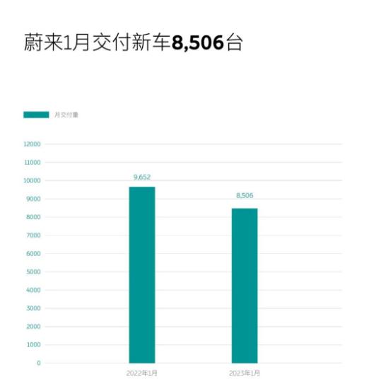 排在第四位的蔚来汽车,今年1月份交付量为8506辆,较去年同期减少12%,环比去年12月份减少46%。其中,蔚来第二代技术平台NT2.0车型,ET7、ES7以及ET5三款车型占到当月总交付数的85.6%。