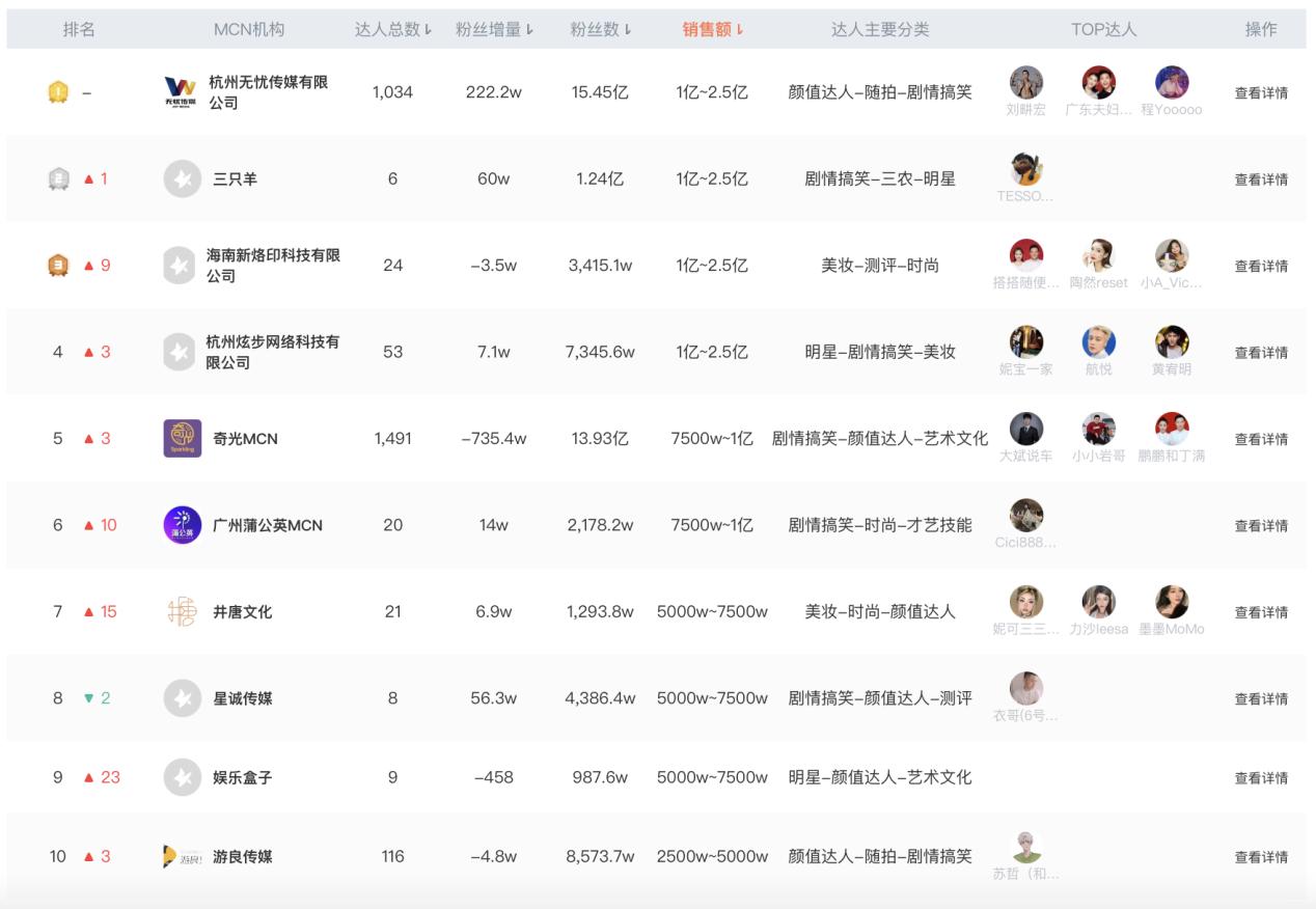 盘点2023年首月抖音带货最强MCN:4家销售额过亿,32家超千万