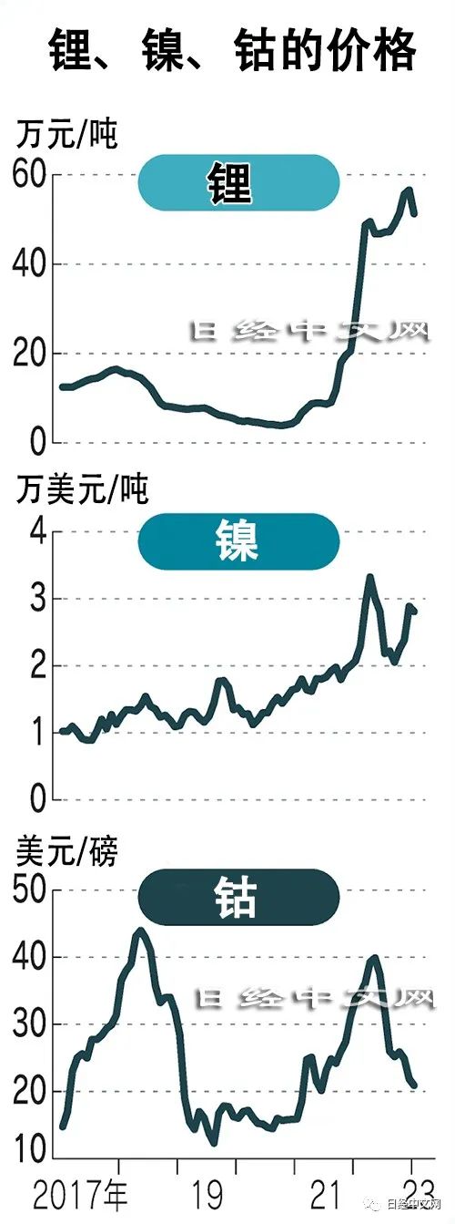 三元锂电池使用锂、镍、钴等稀有金属。锂集中分布于南美和澳大利亚,镍主要分布在东南亚,钴集中分布于非洲等地区,供应量有限。在汽车向纯电动车转型的潮流之下,电池材料的价格高涨。据英国阿格斯媒体(Argus Media)报道,钴的欧洲现货价格最近创下新高,达到2016年的约3倍。