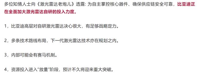 因此,从客观必要性上看,比亚迪选择再次在激光雷达方向大举投入没毛病。