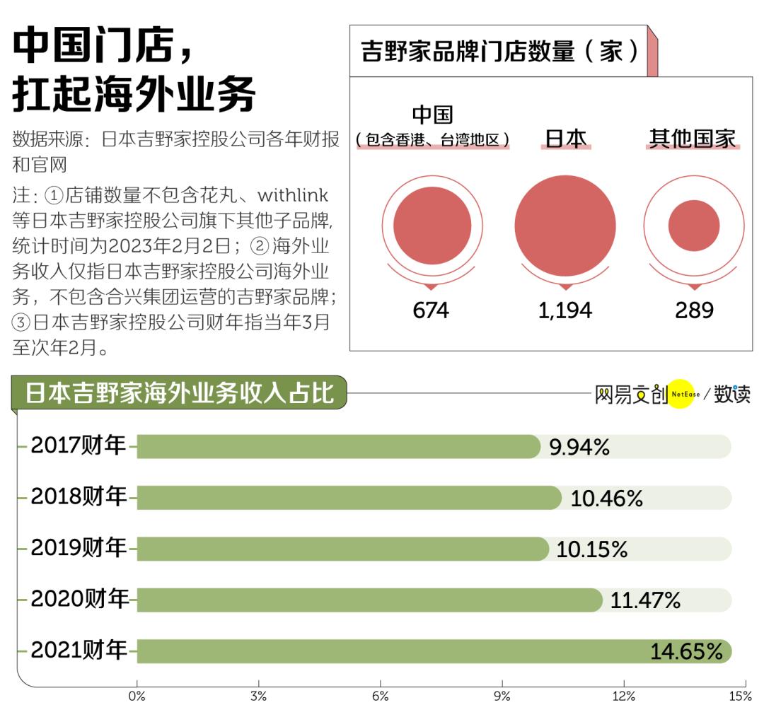 吉野家在中国不断扩大自己的版图。目前,674 家中国门店占整个海外门店总数的 70%。海外市场对日本吉野家总公司的收入贡献也在增加,从 2018 财年占比 10.46%,到 2021 财年贡献 14.65% [7][18]。