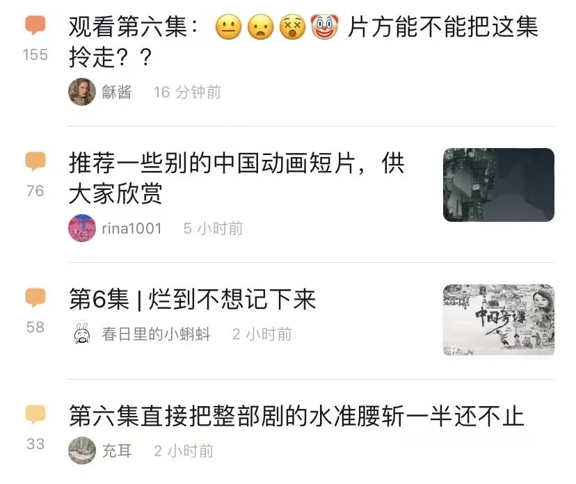 自从前两集被全网封神之后,《中国奇谭》一度成为新的“国漫之光”,中国动画的指路明灯。然而,热度与口碑双双高开低走,说明为国漫探路迎来的注定不可能都是掌声。春节档口碑两极分化的《深海》也未能为国漫再下一城,意味着《中国奇谭》这样的短片合集终究很难补上动画长片的故事“短板”。