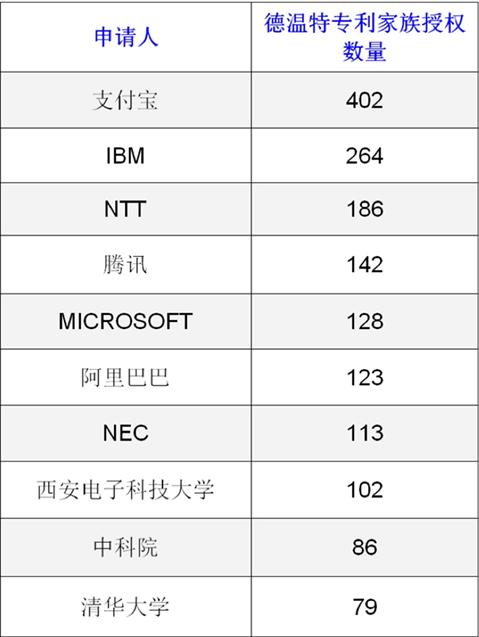 AI安全可信技术德温特专利家族授权数Top 10(图片来源:IPRdaily中文网)