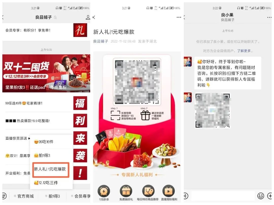 不得不说良品铺子是流量的高端玩家,除了对线下店铺的不断加码积攒客源外,它在私域流量上也做到了各种玩转。
