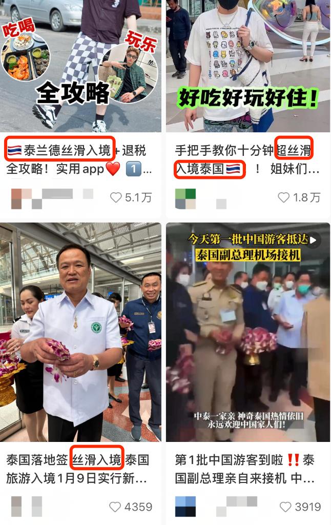 而在社交平台上,泰国旅游的帖子达近百万篇,“丝滑入境”一词一度成为流量密码。