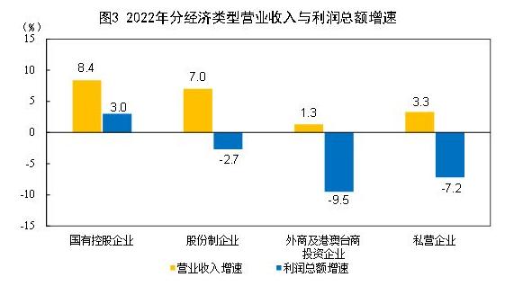 国家统计局数据显示,2022年,全国规上工业企业利润总额比上年下降4.0%,其中私营企业利润总额同比下降7.2%。