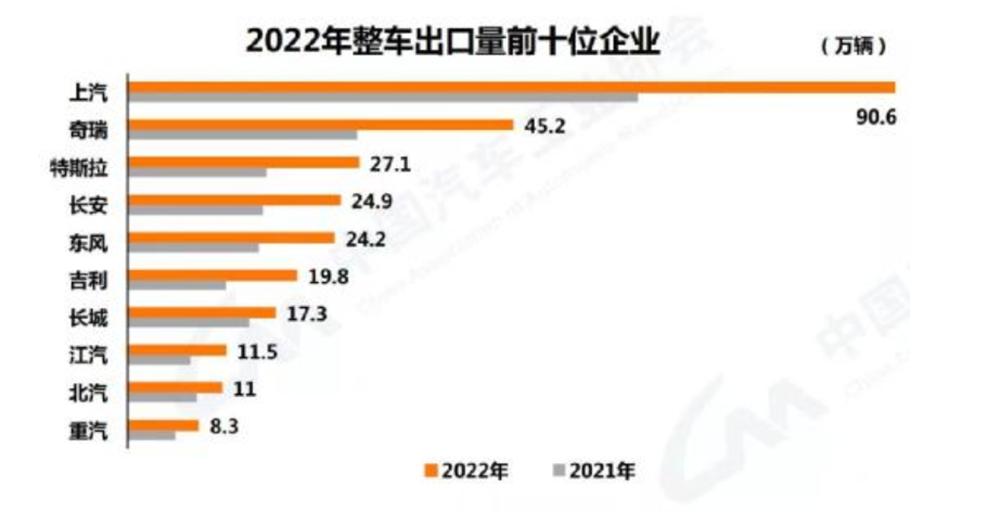2022年无论是出口数额还是出口增速,中国车企都取得了非常亮眼的成绩。
