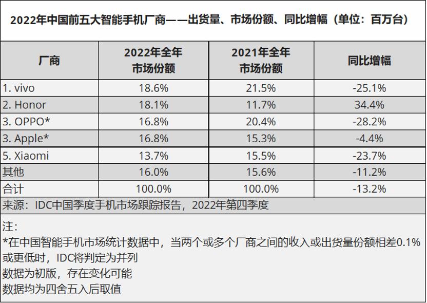 “全球智能手机的出货量已下滑至10年来最低的水平”。IDC数据显示,2022年,无论中国市场还是全球市场,智能手机市场都在萎缩,出货量的跌幅为史上之最。中国市场上,小米、OPPO、vivo等手机厂商的出货量都大幅下跌。IDC称,出货量下降原因在于消费者需求大幅下降、通货膨胀和宏观经济的不确定性。