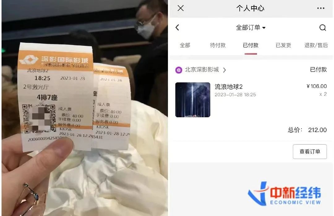北京的赵女士近日与朋友在北京深影国际影城观看《流浪地球2》,在取票后突然发现,票上写的价格与自己购票时显示竟相差一倍多。