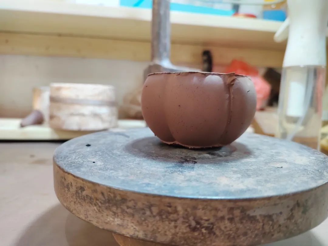 陶红想拿紫砂娃娃的生胚给我看,啪的一声,娃娃的头从身体上掉下来。“啧,怎么都没有修一修,”陶红在一旁自言自语,“我那天肯定不在店里。”修一修是他们常挂在嘴边的话,自己做的壶要修一修,客人做的娃娃要修一修,我做的“龇牙咧嘴”南瓜杯送进窑前大概也要修一修。