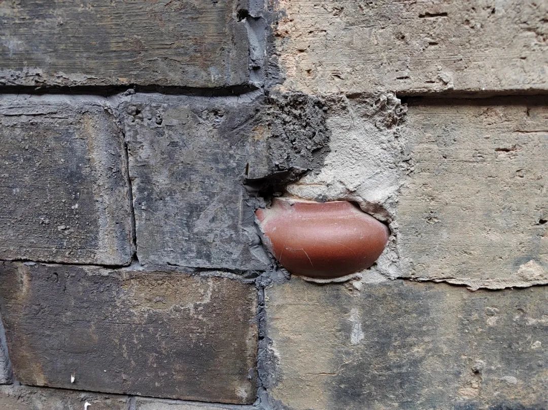 古街的一块青砖墙里嵌着紫砂壶,图源作者