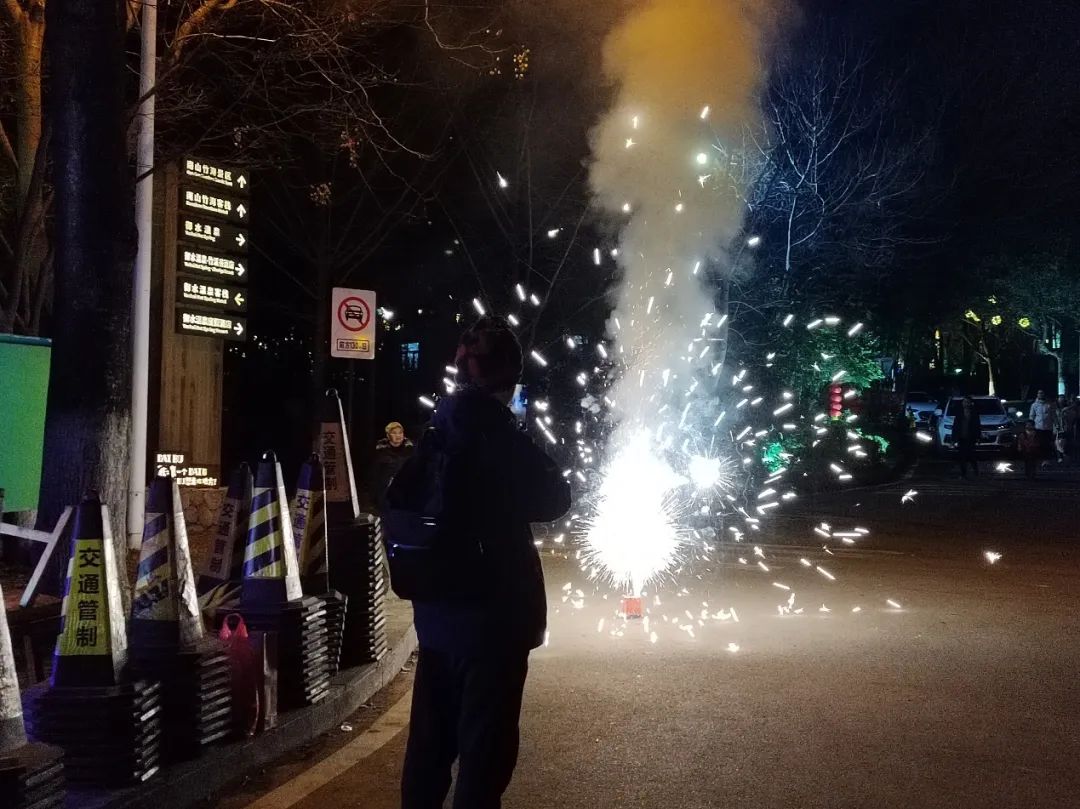 李家园村的居民区域并不大,从村头走到村尾,每隔几米,就有小型烟花在燃放,放烟花的村民和放烟花的游客混在一起,不分彼此。耳边是噼里啪啦的响声,鼻子里是硫磺刺鼻的味道,烟花逐渐把李家园村包围,不用花钱就能在新年看上一场小型烟花秀。