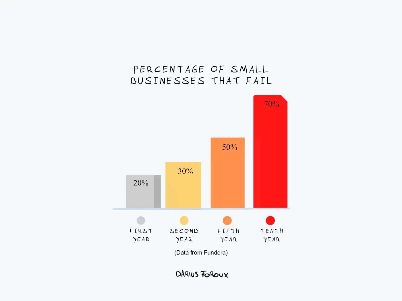 根据 Fundra 的数据显示,70% 的小企业在第 10 年倒闭。