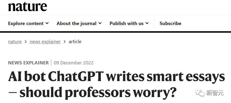 早在12月9日,ChatGPT诞生没几天,Nature显出了先见之明,它发文探讨:教授们是否该担心学生用AI写论文?