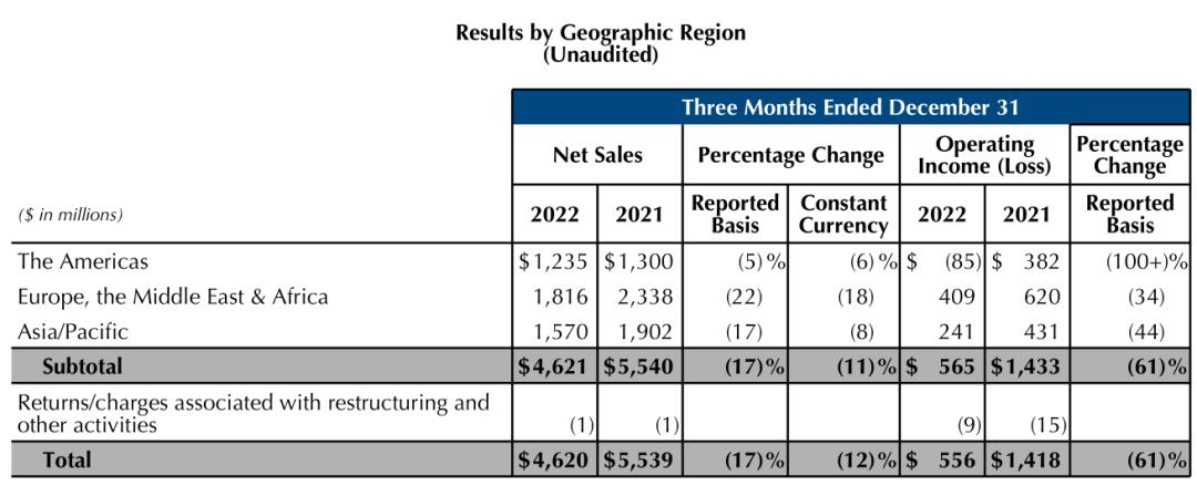 分地区看,报告期内,雅诗兰黛集团在美洲,欧洲、中东和非洲,亚洲/太平洋三大区域的净销售额和营业利润均呈下滑状态。