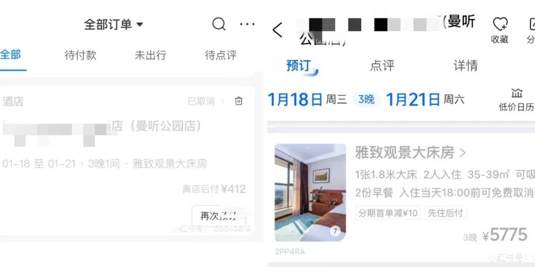 不过,相较于陈沁自行退订,许多人的经历更糟心。锌刻度留意到,在微博、小红书等社交媒体平台,有不少人表示明明提前预订了春节期间的民宿或酒店房间,却在出行前临时被要求补差价或者退房。