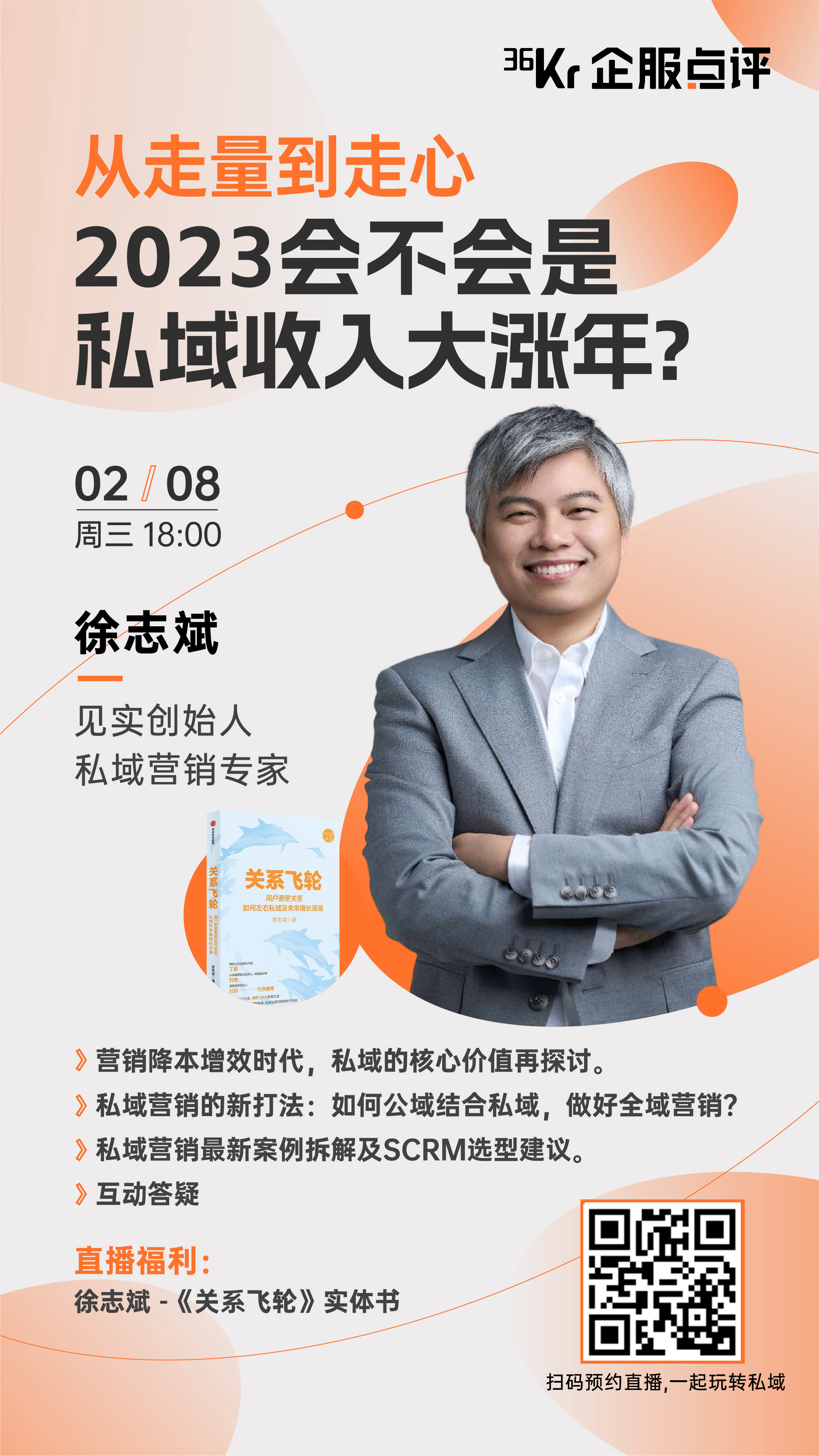 为此,36氪企服点评特邀见实创始人、私域营销专家徐志斌老师带来《从走量到走心 —— 2023会不会是私域收入大涨年?》专场直播,用数据、事实与案例拆解,带大家一起探索2023私域新增长点。