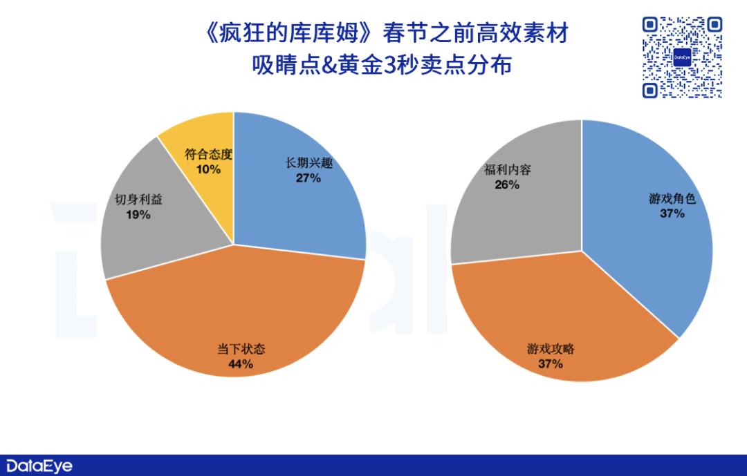 而聚焦在视频素材的创意上,在春节之前,《疯狂的库库姆》多以游戏角色为主要吸睛点,其目的或许是期望通过稀有的剪纸风美术风格,吸引更多泛用户群体的注意。