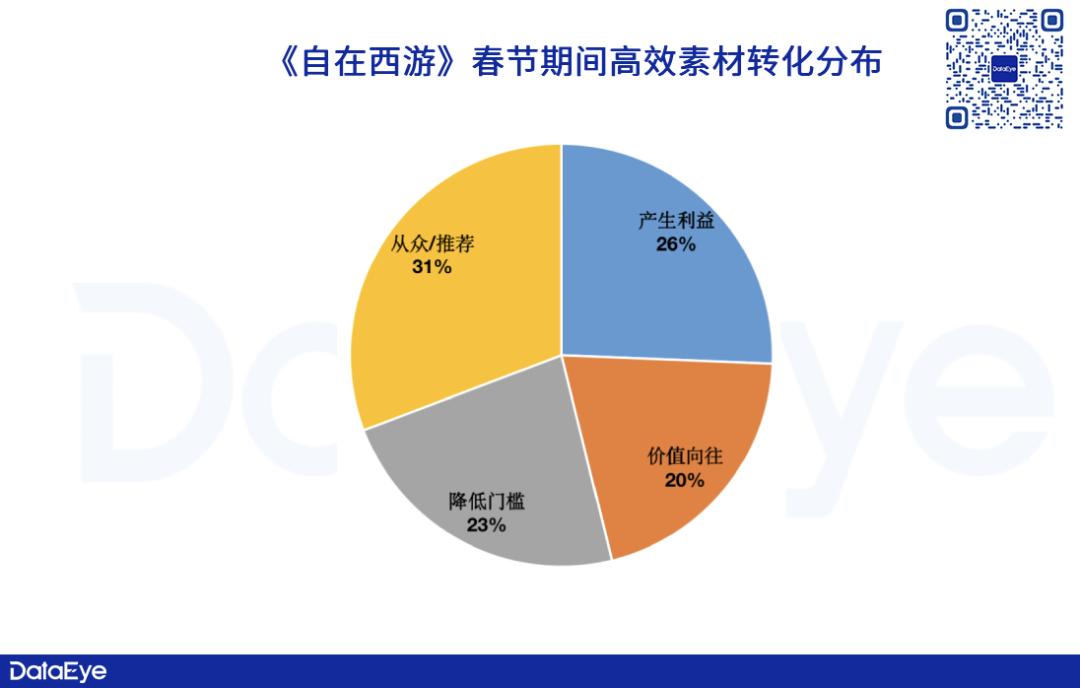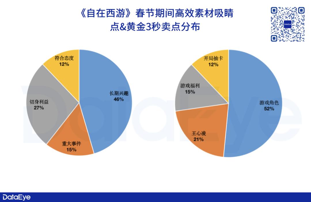 到了春节期间,《自在西游》高效素材TOP20的吸睛点上会更聚焦在游戏角色方面,并且通过精美的唐彩绘画、高辨识度的角色立绘让玩家对此形成记忆点。