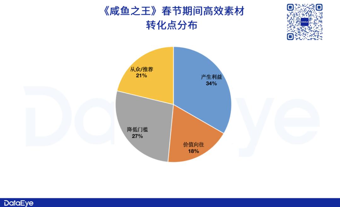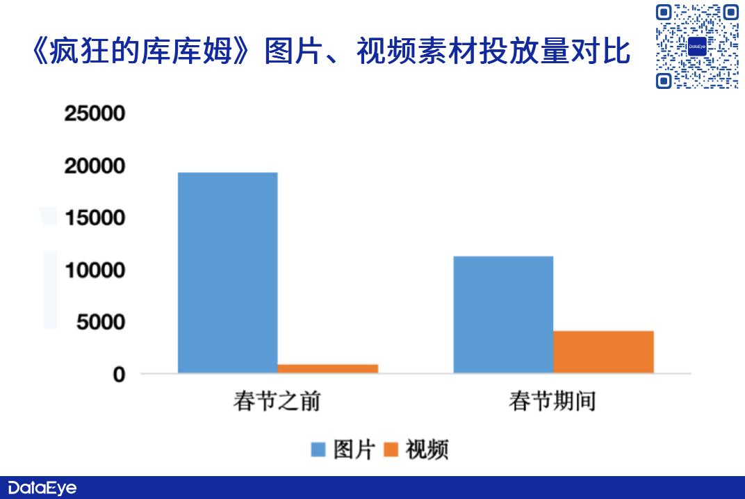 《咸鱼之王》春节档期间(1月15日-1月30日)总素材投放量比春节档之前(1月1日-1月14日)上涨接近79%;