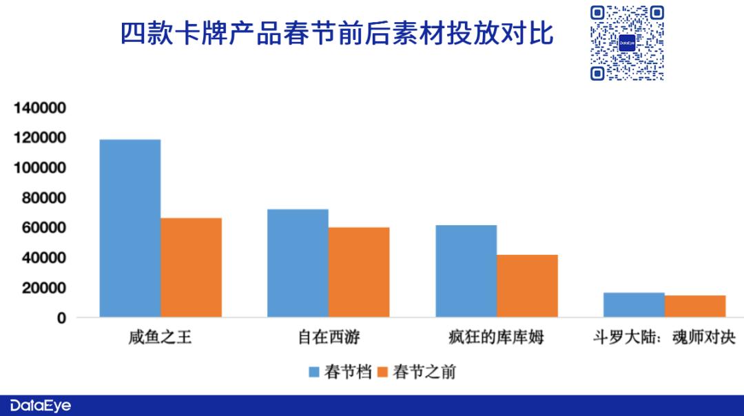 DataEye研究院发现,不少卡牌游戏在春节期间加大了素材投放。