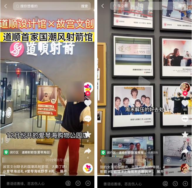 “我们会给达人们制定统一的拍摄主题,指明需要突出哪些卖点。比如强调道顺射箭馆是魔都网红射箭馆,可以体验国潮文化,是个很好的社交第三空间......”