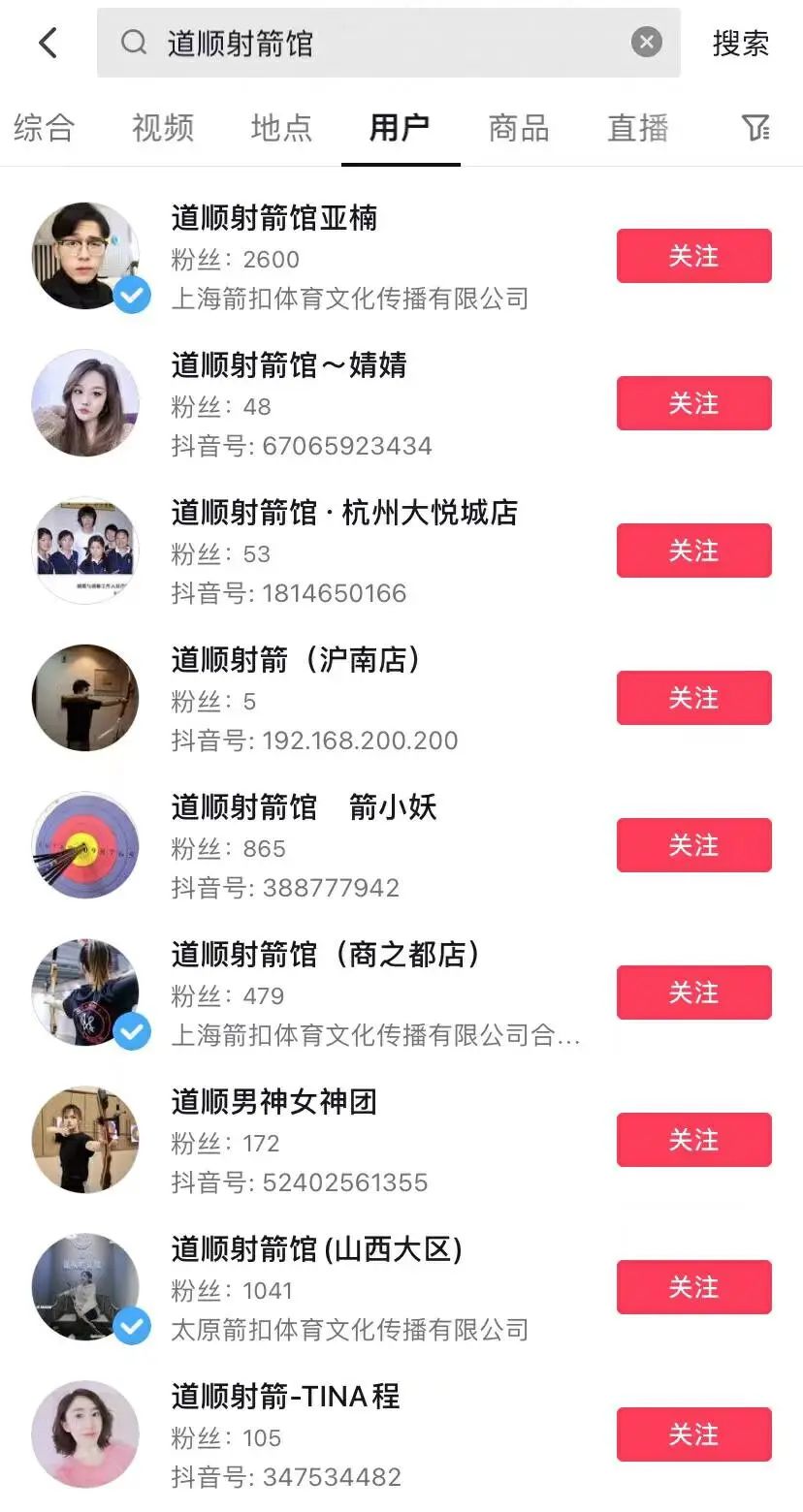道顺射箭馆就建设了一系列自己的品牌矩阵号。龙海涛提到:“射箭馆的一线员工都要运营品牌矩阵号,并且有产出短视频的 KPI 要求,1 个月至少要发 30 条视频。”