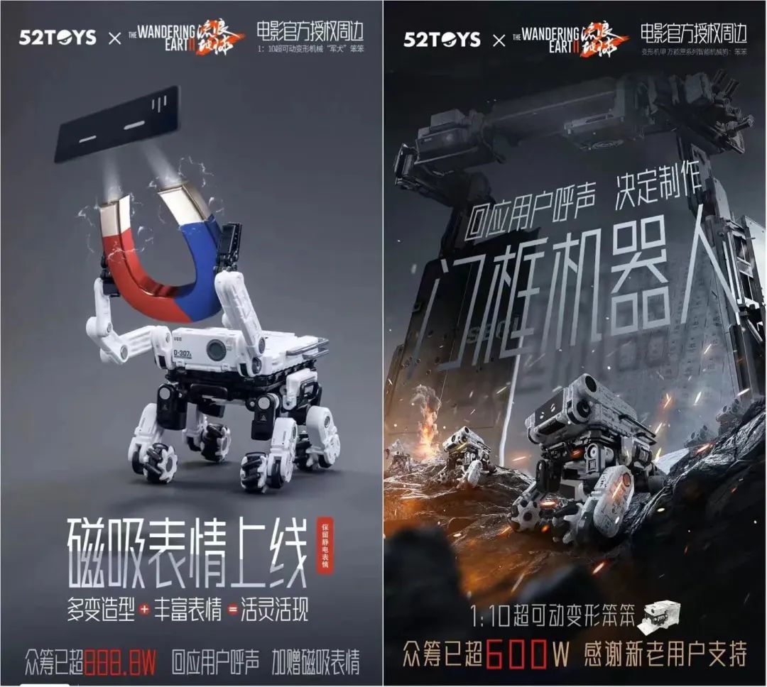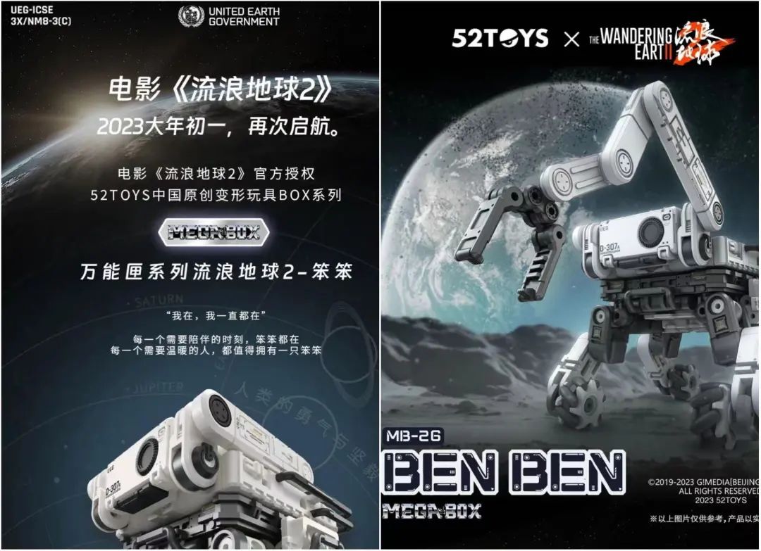 而此次《流浪地球2》的合作品牌之一52TOYS则告诉毒眸,52TOYS一直期待与《流浪地球》系列达成合作,“我们团队对于中国科幻一直都有强烈的情感,因为我们原创的变形机甲玩具无论在题材还是用户群方面,都与《流浪地球》有很大重叠。”