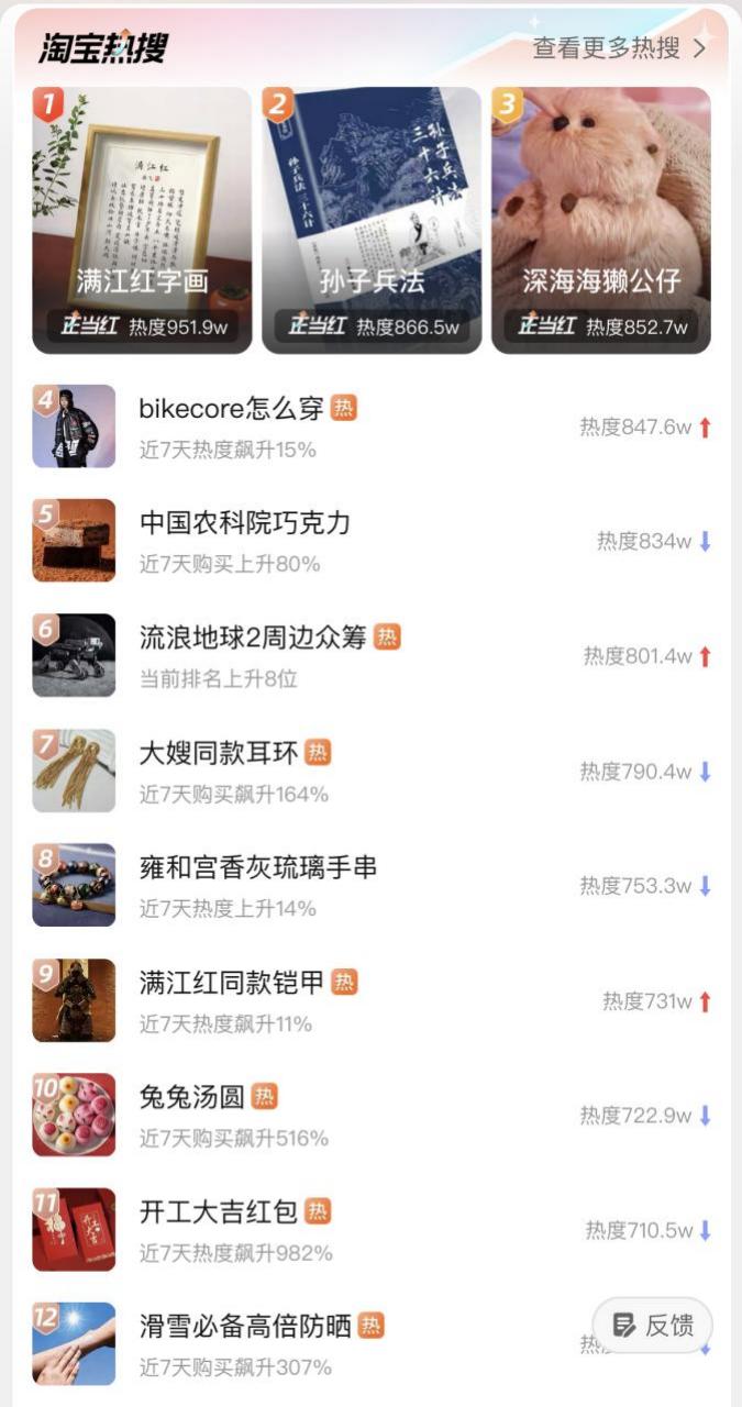 还不只是《流浪地球2》,春节结束后,《满江红》字画、盔甲,《深海》海獭公仔,《狂飙》中高启强爱看的《孙子兵法》也都频频登上淘宝热搜高位,“影视带货”一时风头无两。