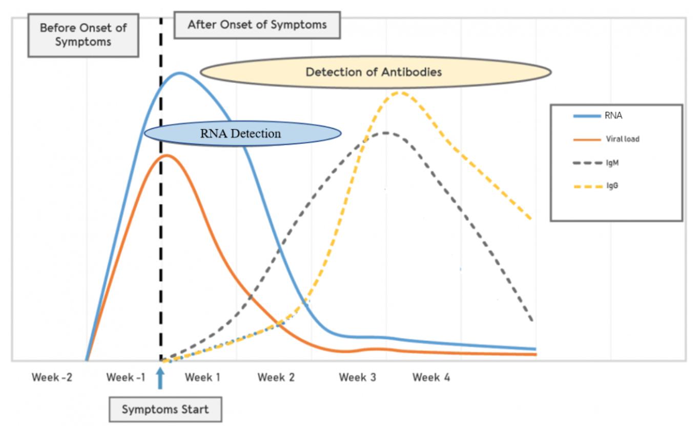 感染后机体核酸和抗体的动态变化(图片来源:维润赛润资讯)
