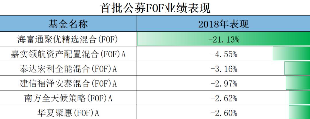 在一片质疑声中,6只公募FOF于2017年四季度相继成立。从成立时点看,并不太好,因为恰好处于2018年市场大跌的“前夜”。最终,所有产品在2018年均录得负收益。其中,“海富通聚优精选混合(FOF)”亏损最为严重,超过20%。