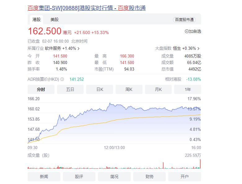如我们所见:百度公司在宣布将要在三月份推出类ChatGPT式的AI聊天应用之后,股价连连上涨,在今日官宣类ChatGPT项目名称为“文心一言”(ER NIE Bot)之后,百度港股股价大涨15.33%。