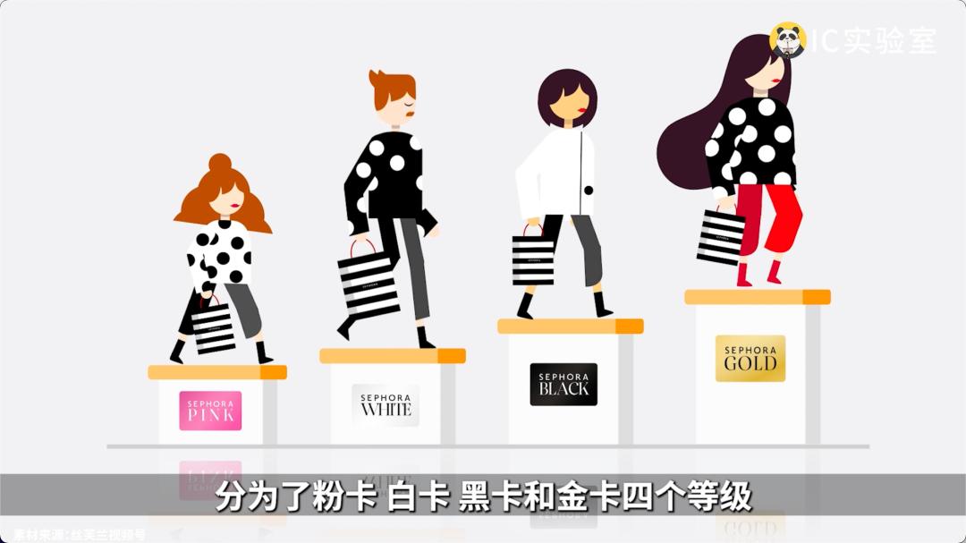 丝芙兰将自己的会员分为了粉卡、白卡、黑卡和金卡四个等级。