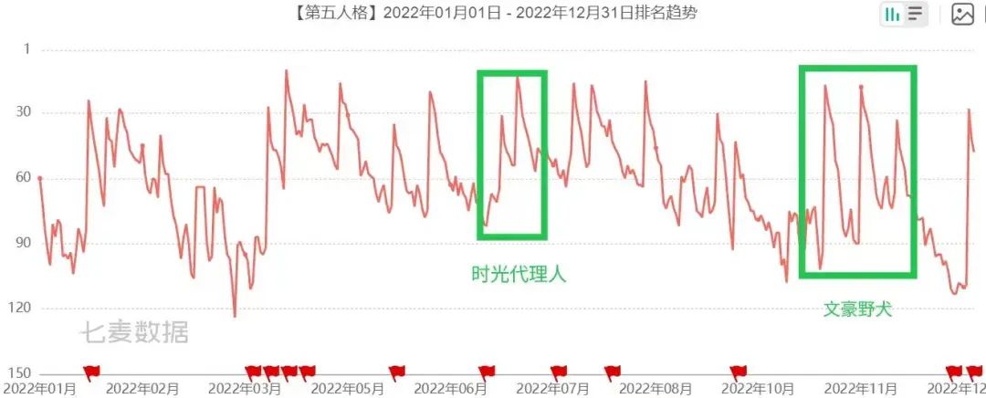 以联动大户《第五人格》为例,除游戏版本更新,游戏在推出联动活动都会出现明显的流水提升。例如,6月30日与国漫“时光代理人”进行联动;11月3日与日漫“文豪野犬”联动。上述联动都使得游戏的短期流水达到了全年的高水准位置。