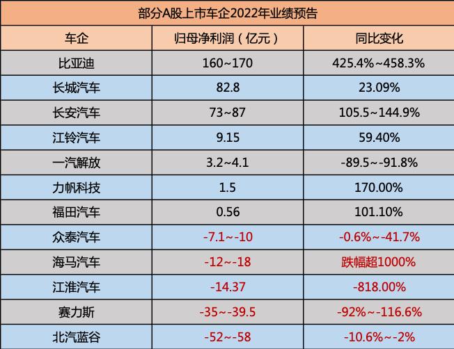 部分A股上市车企2022年业绩预告,一刻商业自制