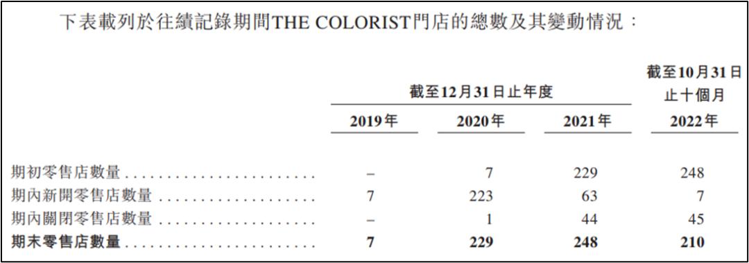 值得注意的是,THE COLORIST的开店速度快,关店速度更快。2019年、2020年、2021年及截至2022年前十个月,KK集团分别开设了7家、223家、63家及7家新COLORIST门店,然而,2021年和2022年前10个月,关店数量分别高达44家及45家,两年关店数量占2020年新开门店的40%。