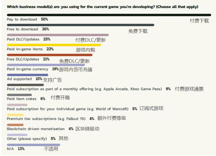 不过今年受调查的开发者中,仅38%曾参与AR/VR游戏开发,比去年下降了6%,又回到了2021年的水平。这说明2022年开发者对于AR/VR的关注一度增加,但可能后来并没有持续这一趋势。