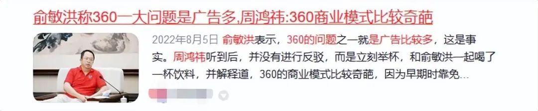 然而,这个“奇葩”模式在多年运行后,成为了一个吐槽点。新东方创始人曾公开表示,三六零的问题之一是广告多。