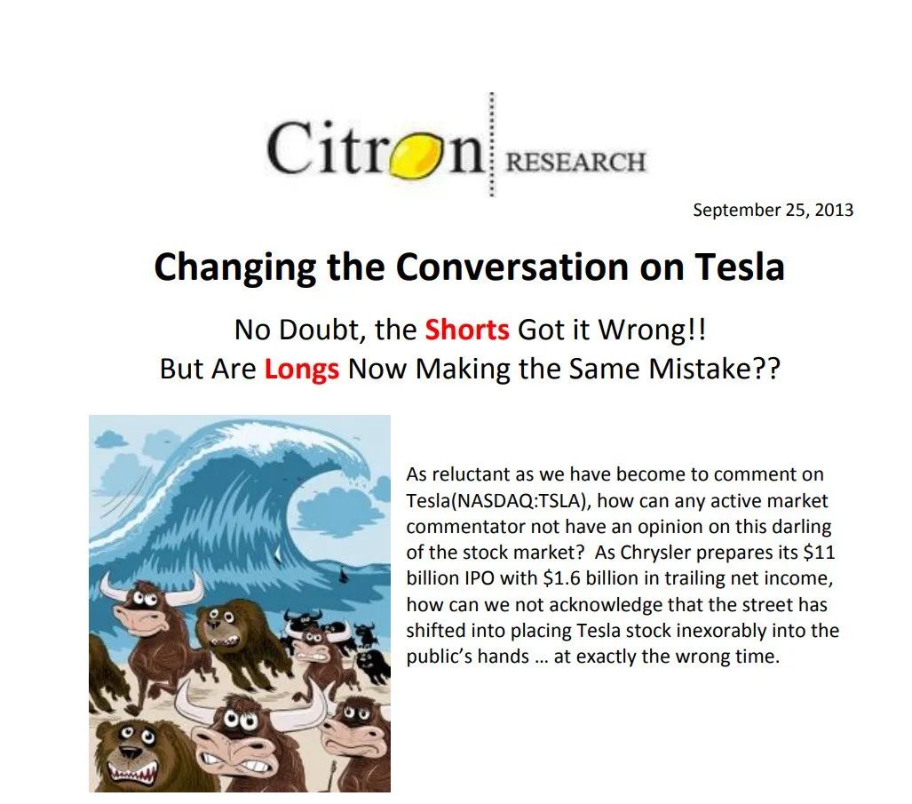 “成为特斯拉的空头并非易事,”香橼创始人莱福特的总结很有代表性,“这是一场痛苦的交易[13]。”